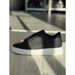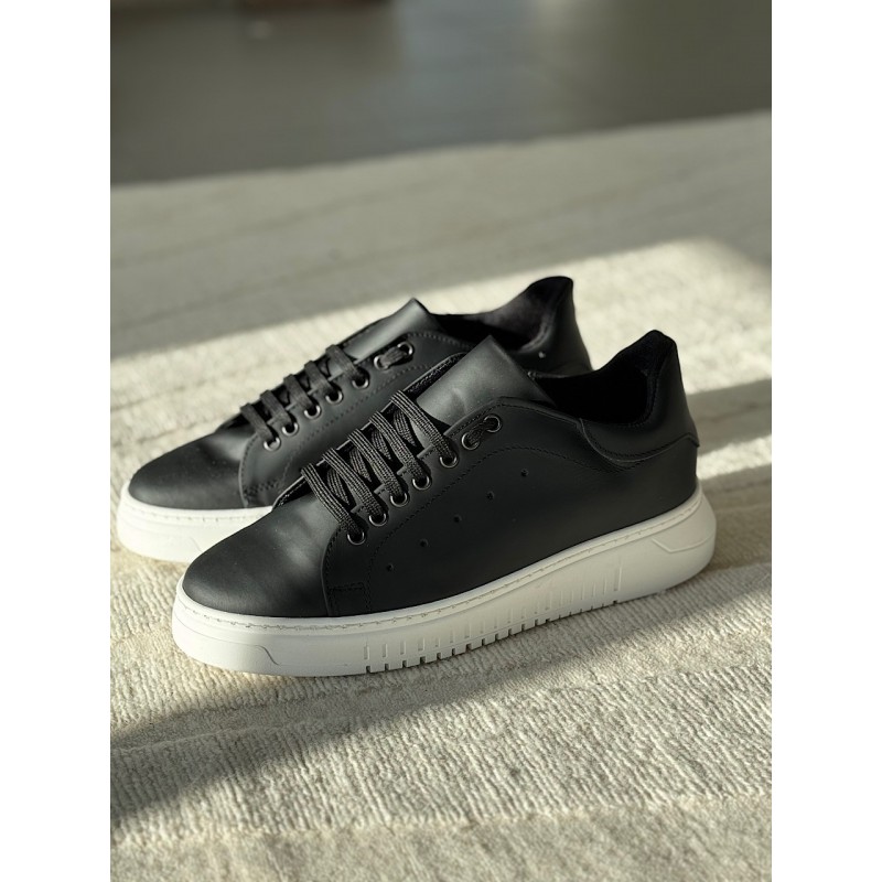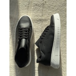 Sneakers in pelle nera fondo in gomma bianco laccio nero vitello fondo bianco calzata regolare made italy