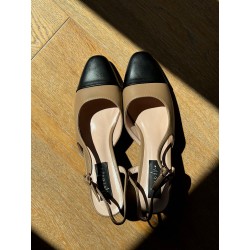 Slingback bassa a punta. Tomaia base cipria e dettagli in rilievo fiori neri. Calzata regolare , se si dovesse oscillare tra due numeri acquistare il pi� grande.